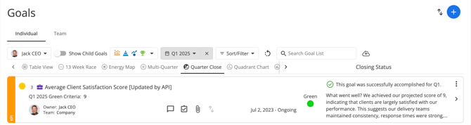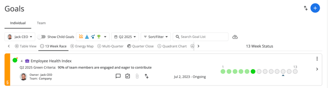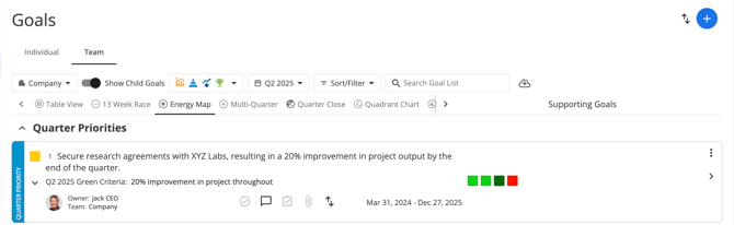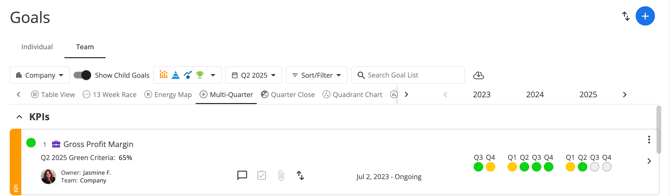 - This view is great for Annual Priorities, Winning Moves or KPIs that span multiple quarters
