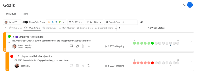- Disable Show Child Goals: see all of the goals for the User or Team, regardless of links