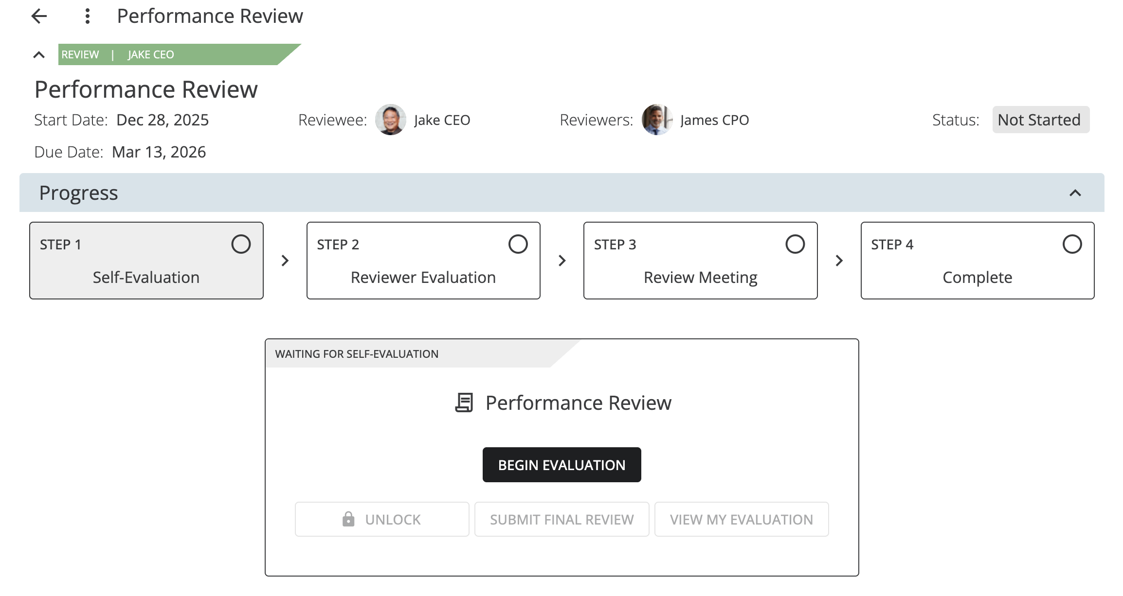 Step 1: Reviewee Self Evaluation